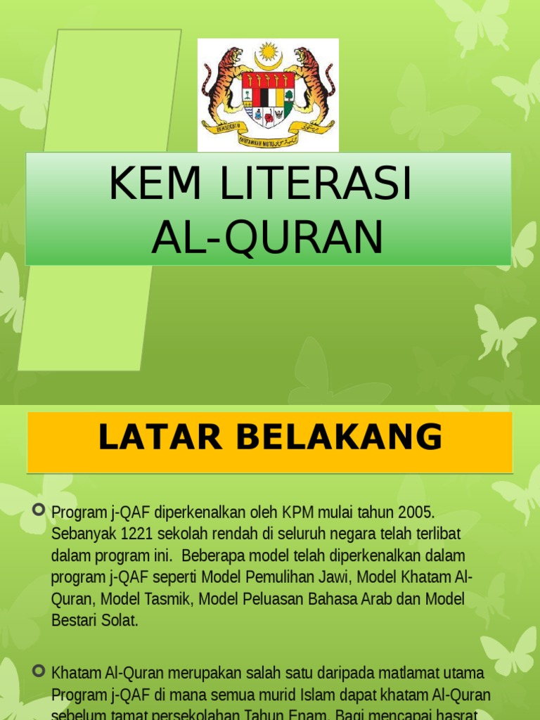 Kemahiran al-Quran disamping memahami mengamalkan dan menghayati Islam secara menyeluruh. Ilmu tarannum al-Quran telah berkembang di sekolah melalui program Kelas Khas Kemahiran Membaca dan Menghafaz Al-Quran KKQ di bawah inisiatif konsisten Kementerian Pendidikan Malaysia KPM sejak tahun 1986 JAPIM 2004. BUKU TEKS KKQ TINGKATAN 5.